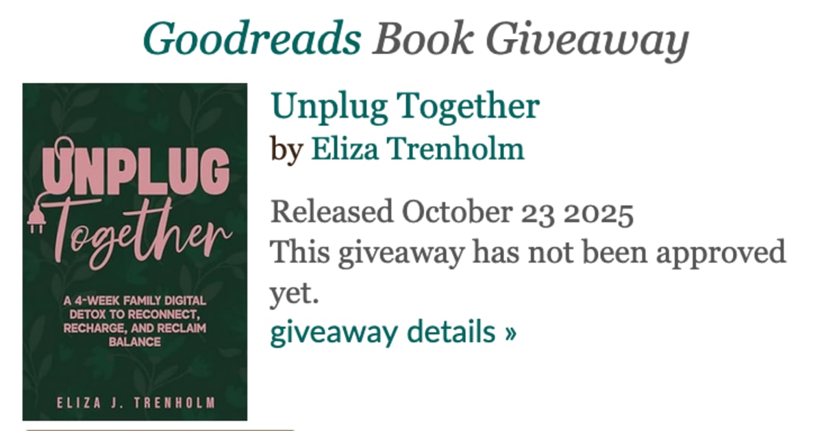 I’m excited to share that Unplug Together will be featured in an upcoming giveaway on Goodreads, running from January 18 through February 16.